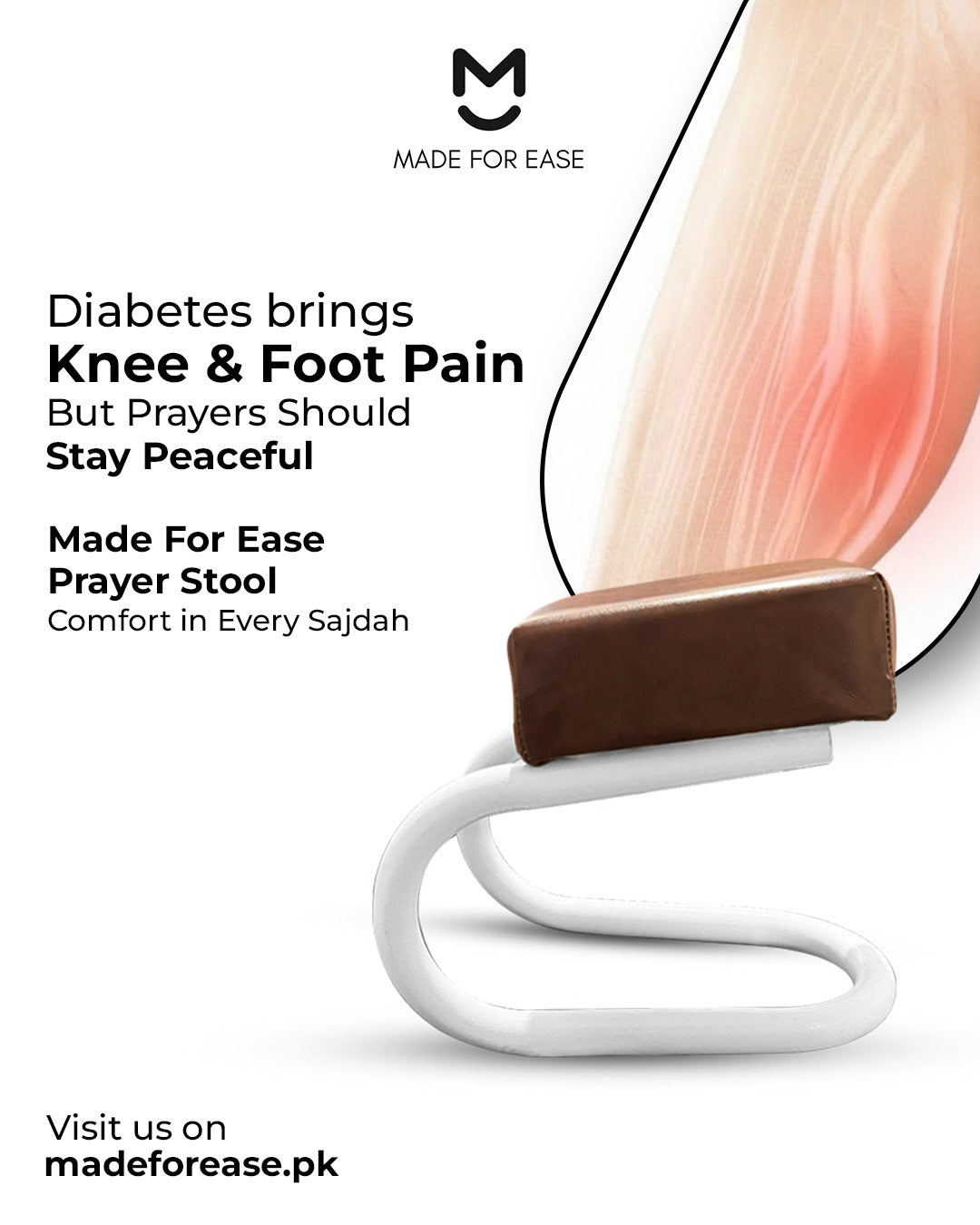 Specially helpful for diabetes patients, it eases stiffness and promotes safe, relaxed sitting during salah.